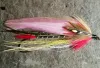 Hook: 4xl Streamer #14 - #4 Thread: Red Body: Flat Silver Tinsel Rib: Oval Silver tinsel Wing #1: White Bucktail Wing #2: Red Bucktail Wing #3: Peacock Herl