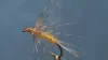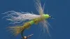 Hook: Dry #12 - #20 Thread: Chartreuse Tail: Yellow Deer Hair Body: Yellow Peacock / Thread / Yellow Peacock Wing: White Calf Tail Hackle: Cream