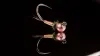 Jig Head Indicator. Materials Used; Hook, Fulling Mill Jig Force Size 16 Wing, Pink and White Poly Yarn or Anton Thread, Uni-8/0 Black Rib, Small Silver Tinsel