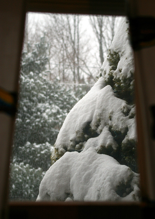This is what it looks outside my window right this minute. Snowing and no stop in site. Already shovelled once, and will probably do twice more today. Ugh.