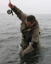 On the other hand, when it settles and the murkiness of the water reaches a certain low level, we celebrate, because it's a well-known fact that the boots-just-barely-visible state of the water will create close to perfect conditions for sea trout fishing. The fish will be hunting ferociously in the shelter of the dirt and aggressively attack most things that move—including our flies... hopefully.