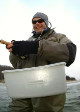 So provided that the wind isn't too rough and the waves aren't too high, we look for water with some "color" caused by the stirred-up bottom sediment. That is typically found on the shore where the wind was head on the day before.