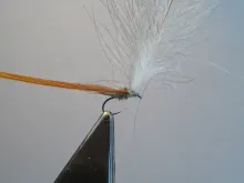 A small mayfly, which may be (mis)taken for a dun during the sometimes the concentreted hatches on late August and Septemper evenings. It uses a hollow extended body, parachute hackle and wings of cdc stems to float high.