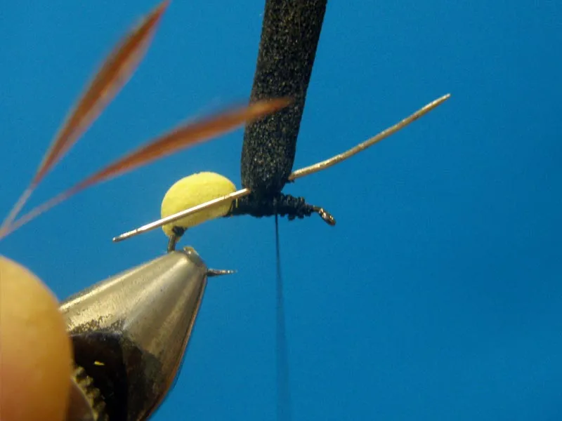 Use a needle to poke holes in the foam, and put the wings through the foam
